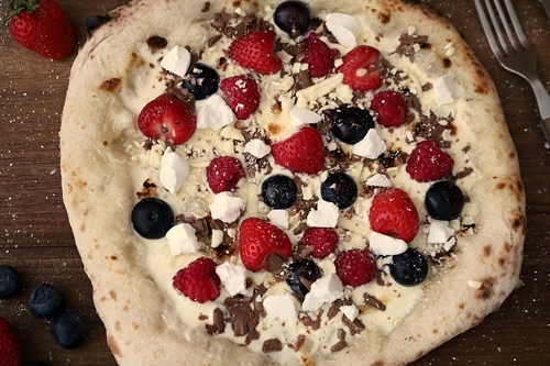 Der totale Kalorien-Overkill  - aber sooo lecker! Pizza in der süßen Variante: "Sweet Pizza" mit einem Belag aus Mascarpone und frischen Früchten als Topping...