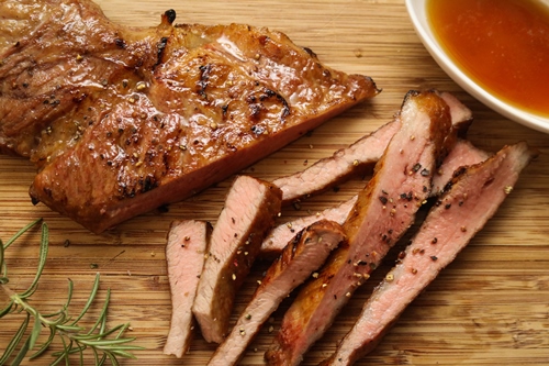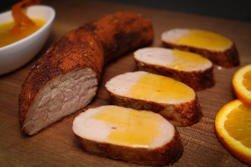 Auf Zedernholz geräuchertes Schweinefilet mit Orangensauce