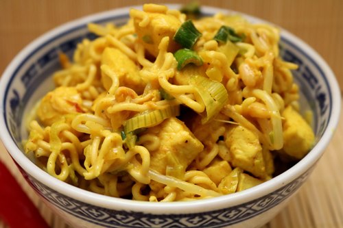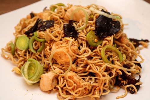 Gebratene Nudeln sind ein Klassiker in der Wok-Küche - zusammen mit Hähnchenbrust und Sojasauce als Hauptzutat neben den Nudeln ensteht ein leckeres Gericht!
