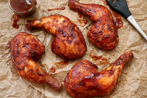 Hähnchen "low and slow" ist immer gut - ein einfaches Rezept für Hähnchenschenkel mit einer leckeren, fruchtigen Mop-Sauce!