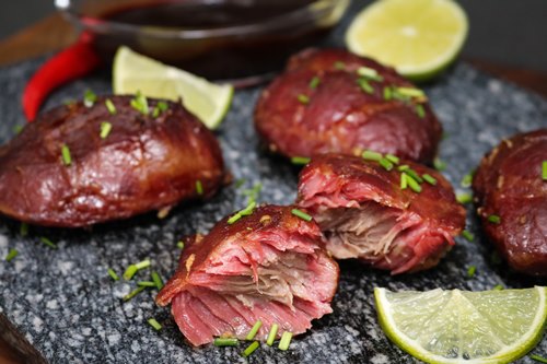 Rehkeule aus dem Smoker in Rotwein-Marinade